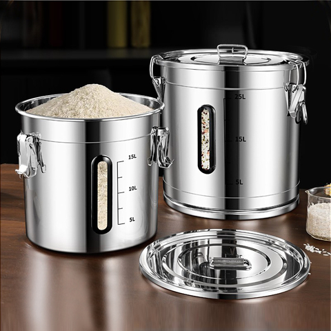 דלי נירוסטה רב-שימושית לאחסון מזון חסין לחרק לאטריות אורז ומרכיבים אחרים